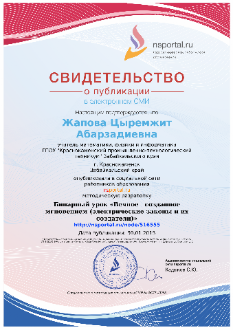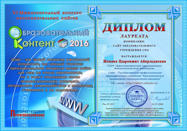 Сайт-портфолио преподавателя информатики ГПОУ "Краснокаменский промышленно-технологический техникум"
