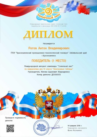 Сайт-портфолио преподавателя информатики ГПОУ "Краснокаменский промышленно-технологический техникум"