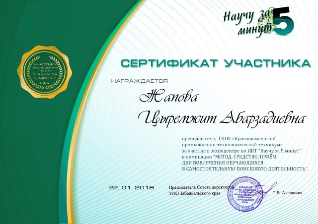 Сайт-портфолио преподавателя информатики ГПОУ "Краснокаменский промышленно-технологический техникум"
